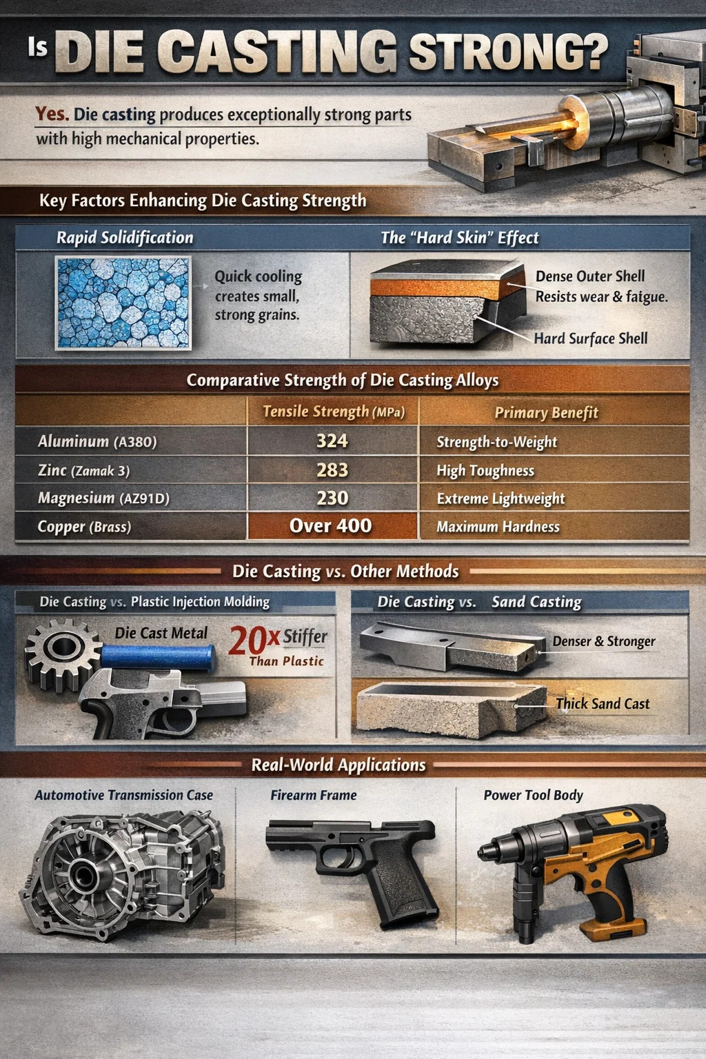 För att förstå varför pressgjutning är gynnad i krävande industrier som fordon och flyg, måste vi titta på de tekniska faktorer som bygger dess "styrka" profil.