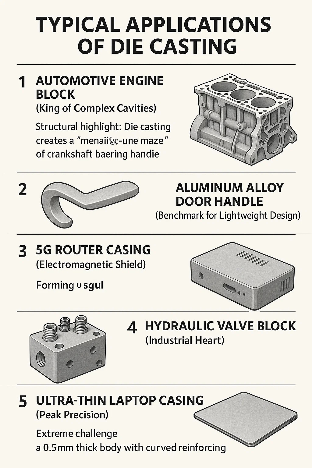 Strukturella höjdpunkter: Pressgjutning skapar en "tre-i-ett labyrint" av vevaxellagerhus, kylvattenkanaler och oljepassager i en enda process, ungefär som att gjuta ett nätverk av sammankopplade metalltunnlar i en stålform.